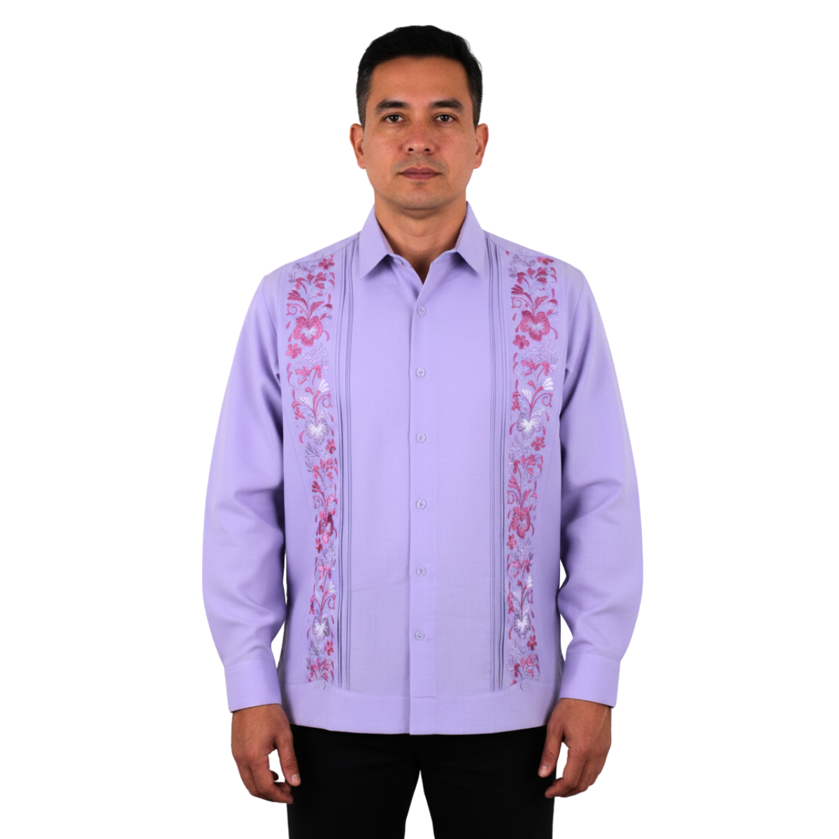 Guayabera Bordada Yucateca Lila Modelo Colibrí Manga Larga Para Hombre