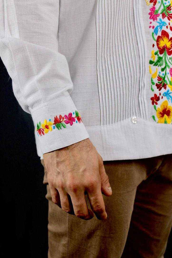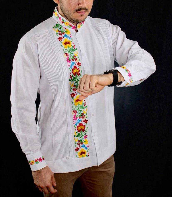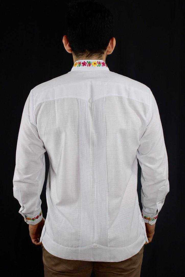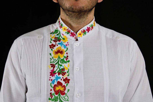 Guayabera Yucateca Bordada Blanca Multicolor Modelo Colibrí de Manga Larga para Hombre